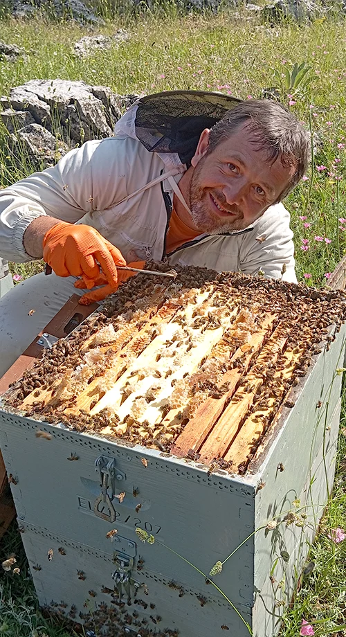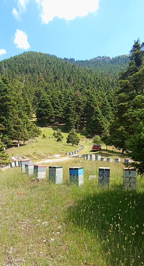Each year, our hives’ journey follows the flowering of the Greek land, from mountainous Arcadia to the pine forests of Evia and the thyme-covered mountains of Sparta. This migratory beekeeping creates indirect economic activities, supporting local suppliers, transporters, and small businesses. At the same time, our honey’s production and packaging are done with respect for tradition, utilizing local resources and manpower.